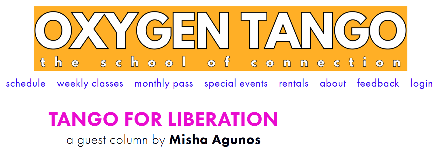 A multi-part limited guest column for Oxygen Tango studio in Los Angeles exploring the roles that embodiment and liberation play in tango spaces.